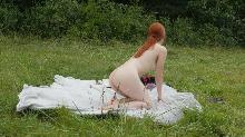 back  Sweet redhead nudist masturbating outdoor - Second camera (video)